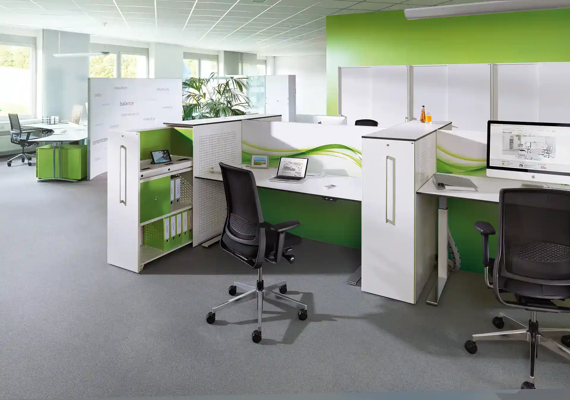 - Blindage acoustique et optique vis-à-vis du poste de travail voisin
