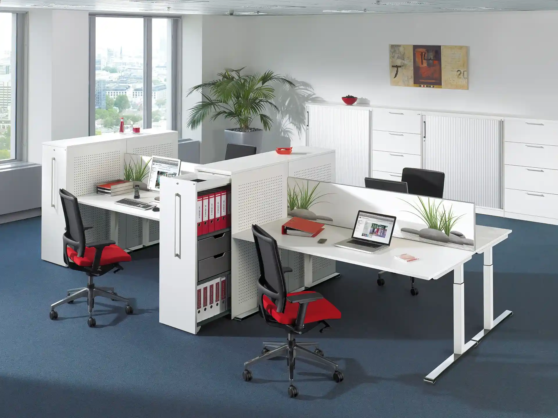Les armoires à tiroir vertical sont des armoires coulissantes destinées à l’aménagement de bureaux modernes. Parallèlement, ce mobilier de bureau de taille réduite fait office de séparation de pièce visuellement discrète et de barrière acoustique vis-à-vis du poste de travail voisin.