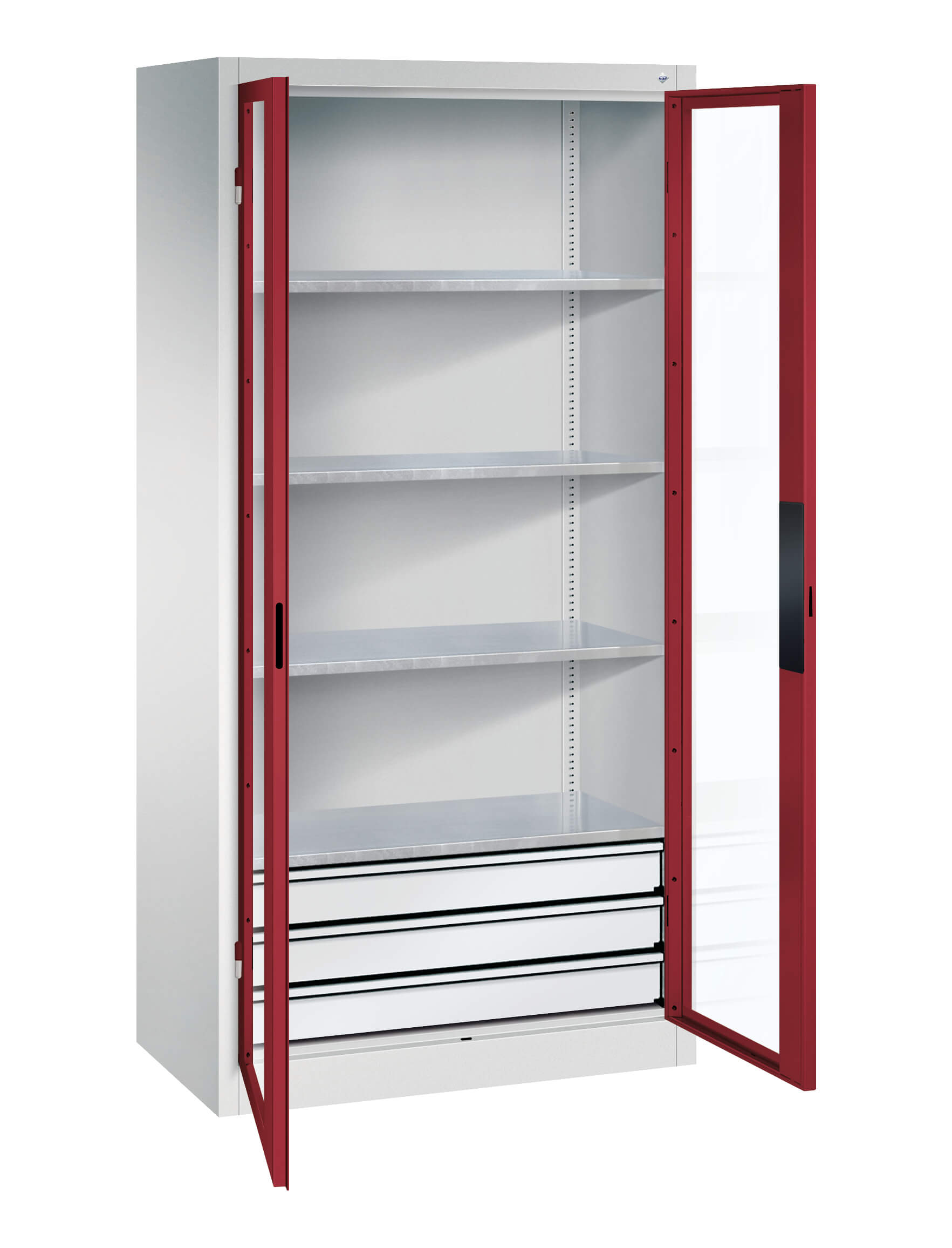 | + | Portes avec vitre transparente pour une vue directe sur l'armoire, gain de temps et d'argent grâce à plus d'ordre et de clarté |