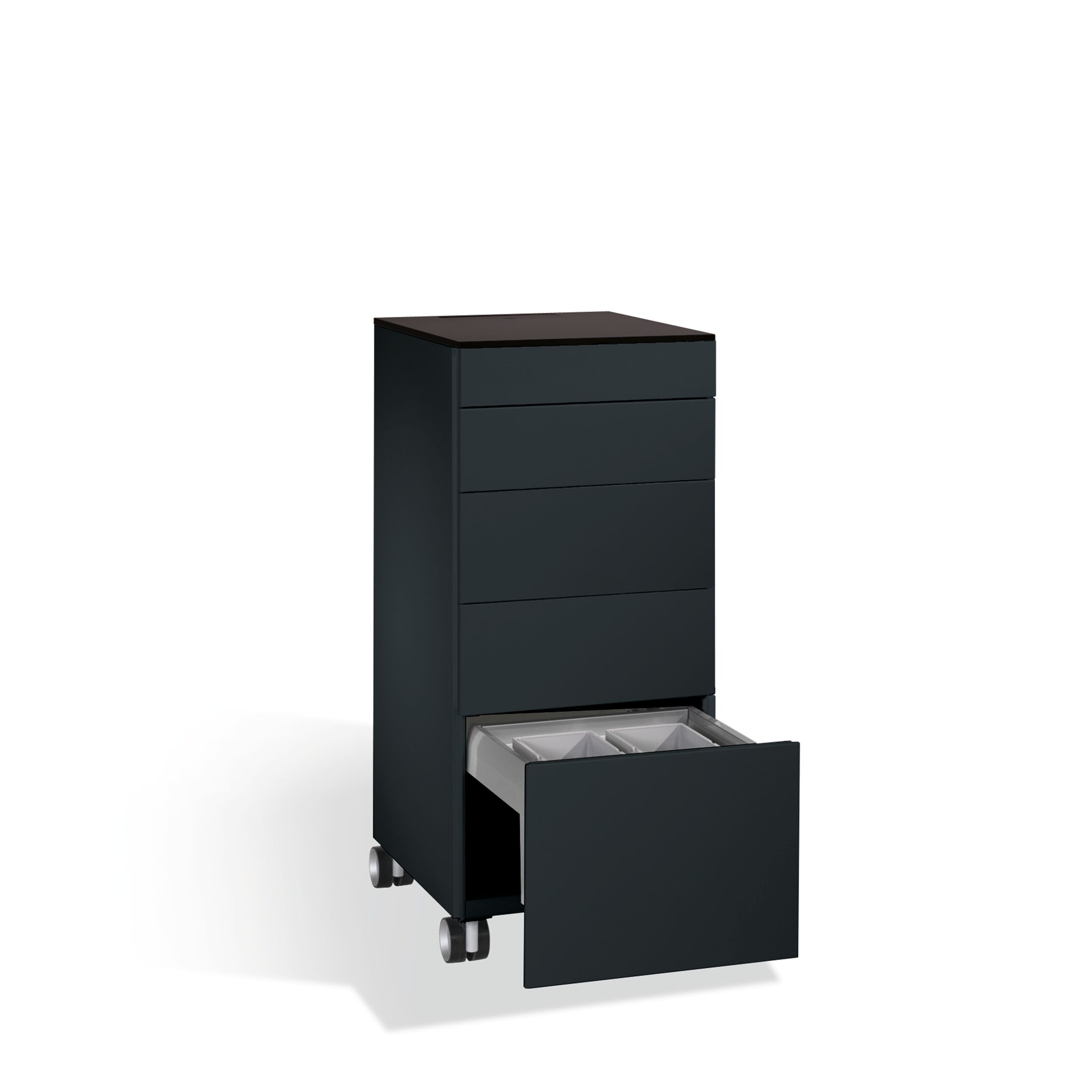 + | Dispositif de blocage des tiroirs robuste pour une sécurité contre le basculement : si un tiroir est sorti, tous les autres sont bloqués |