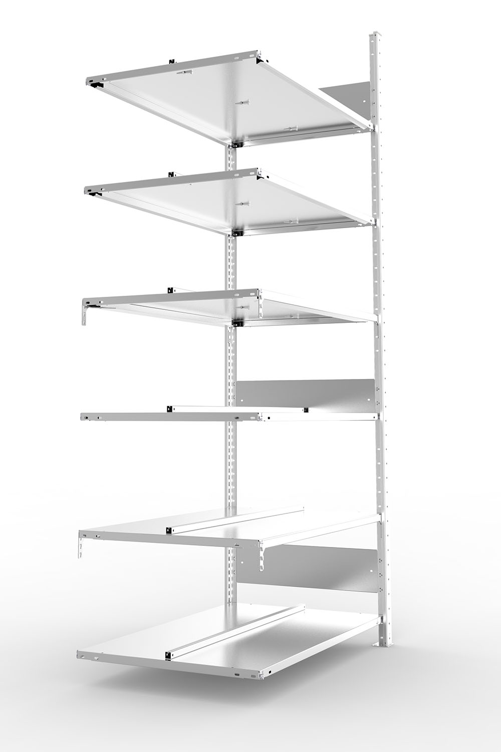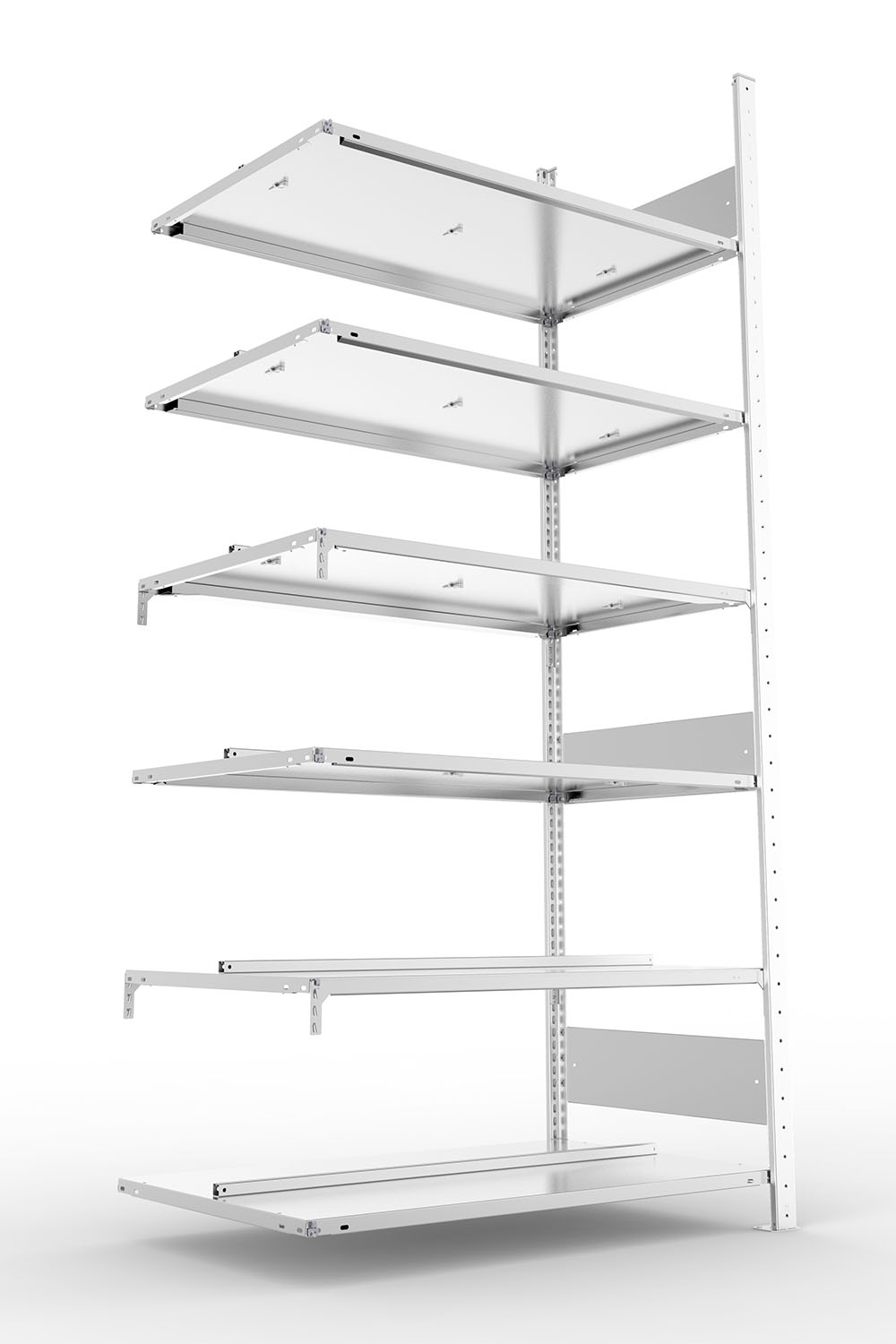 étagère pour classeurs Profi, Étagères d'extension doubles, 6 tablettes avec une charge par tablette de 100 kg chacune et une charge max. par travée de 1220 kg, une sécurité par rayonnage n'est pas nécessaire, la surface est galvanisée, Dimensions (H x L x P): 2200 x 1000 x 600 mm