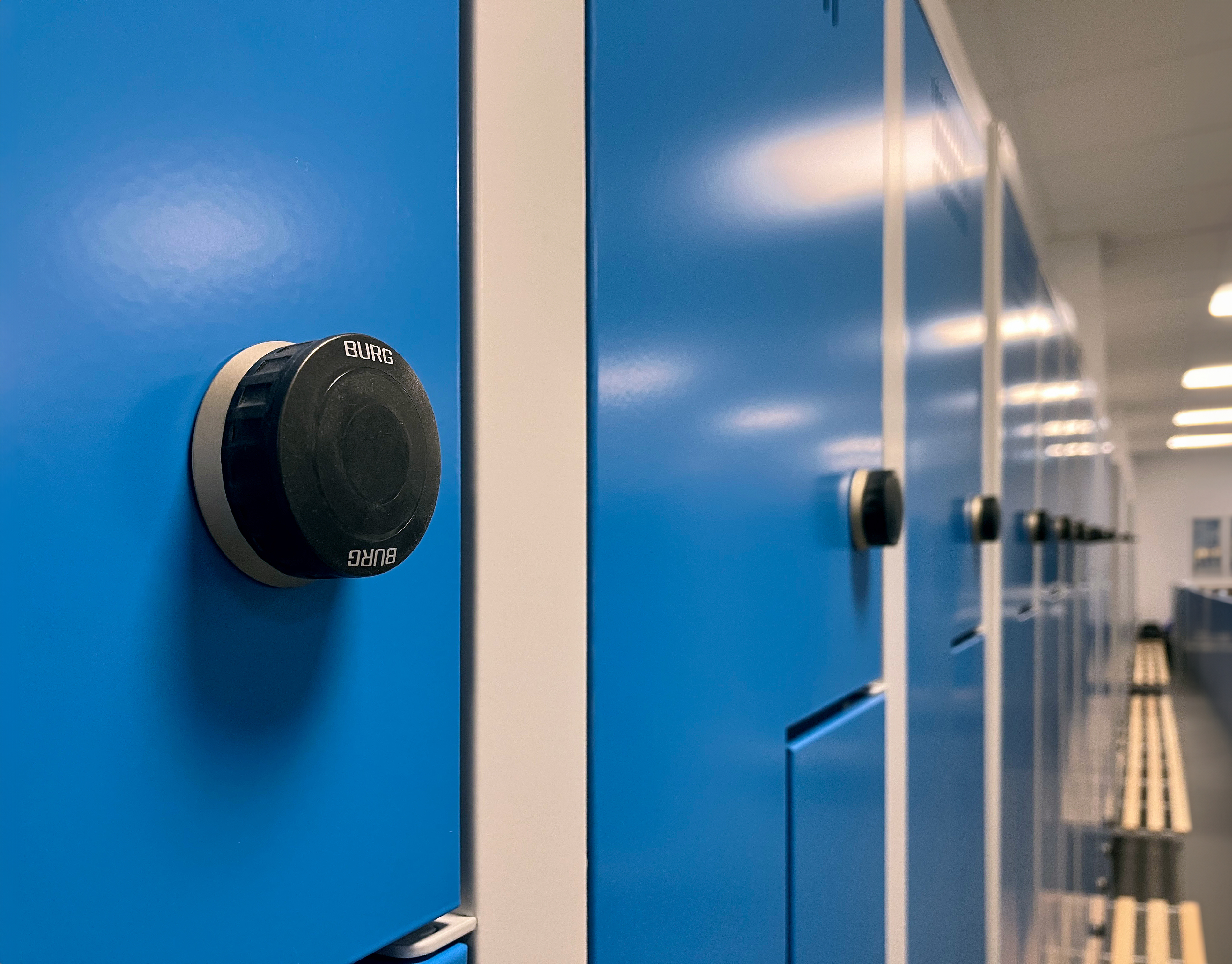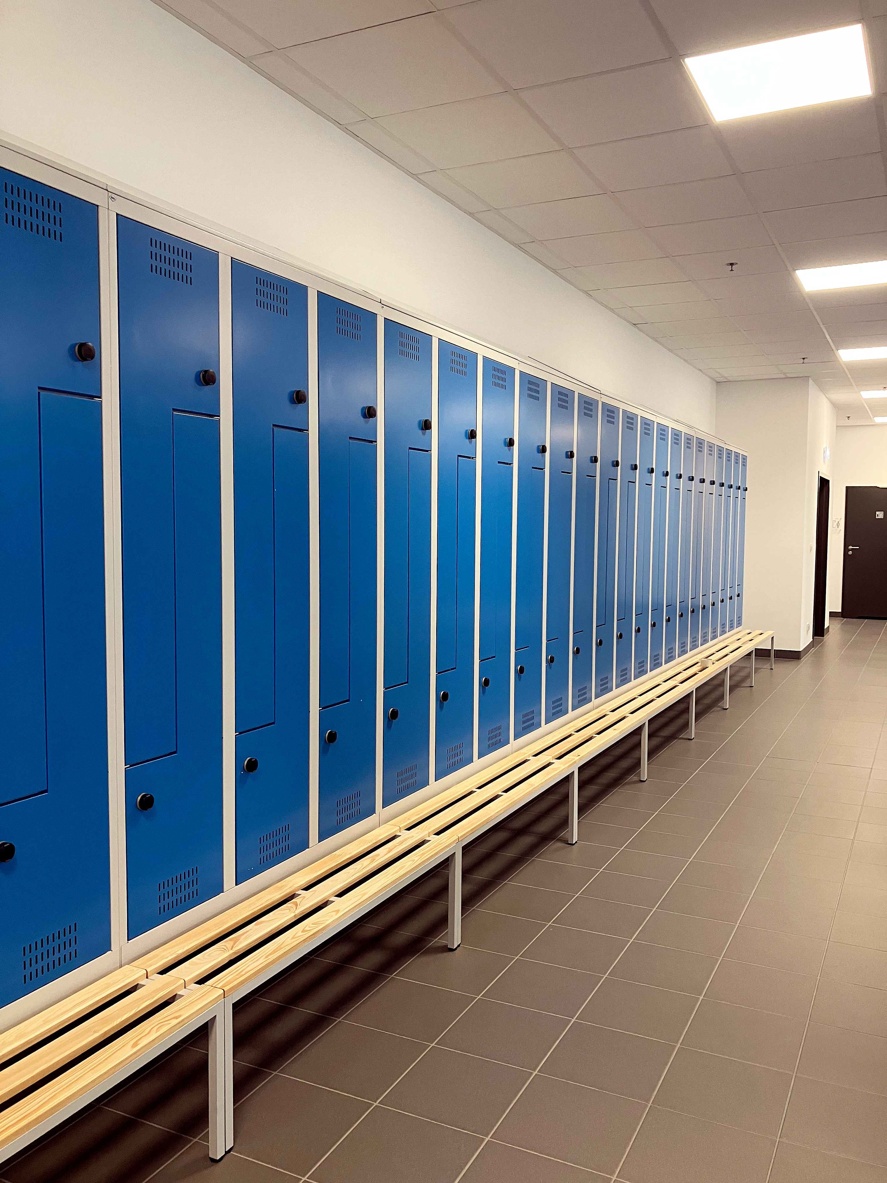 La loi polonaise sur la sécurité et la santé au travail exige une séparation stricte des vêtements et des aliments. C'est pourquoi, en collaboration avec le client, nous avons décidé d'installer 370 casiers Z à trois compartiments et 55 casiers Z à deux compartiments de la série « Basic » dans l'espace vestiaire. Pour le stockage des aliments, nous avons développé une version spécialement adaptée de notre « armoire pour ordinateur portable », qui a convaincu par la taille confortable de ses compartiments et sa fonctionnalité. Toutes les armoires ont également été équipées de serrures électroniques modernes de BURG, qui fonctionnent avec une carte à transpondeur, une innovation à la fois pour le client et pour notre fournisseur.