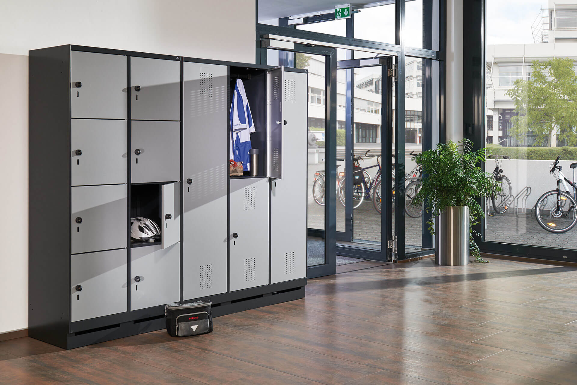 Extrêmement bien conçus, nos meubles comme nos systèmes de fermeture sont disponibles en plusieurs variantes. À noter : tous sont fabriqués en acier brut robuste, ce qui nous permet de contribuer à la protection de l’environnement. La diversité de nos produits vous garantit une grande flexibilité.